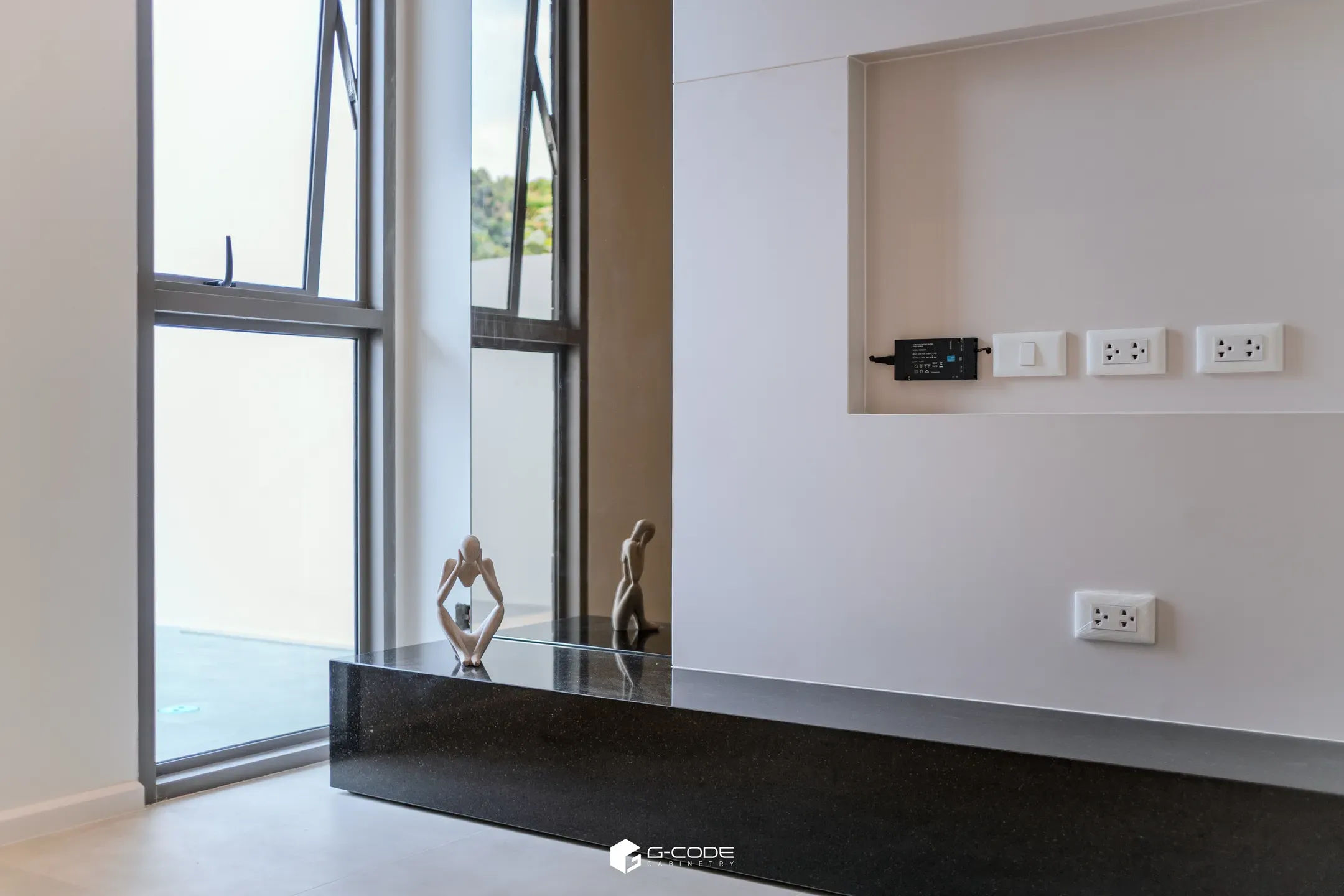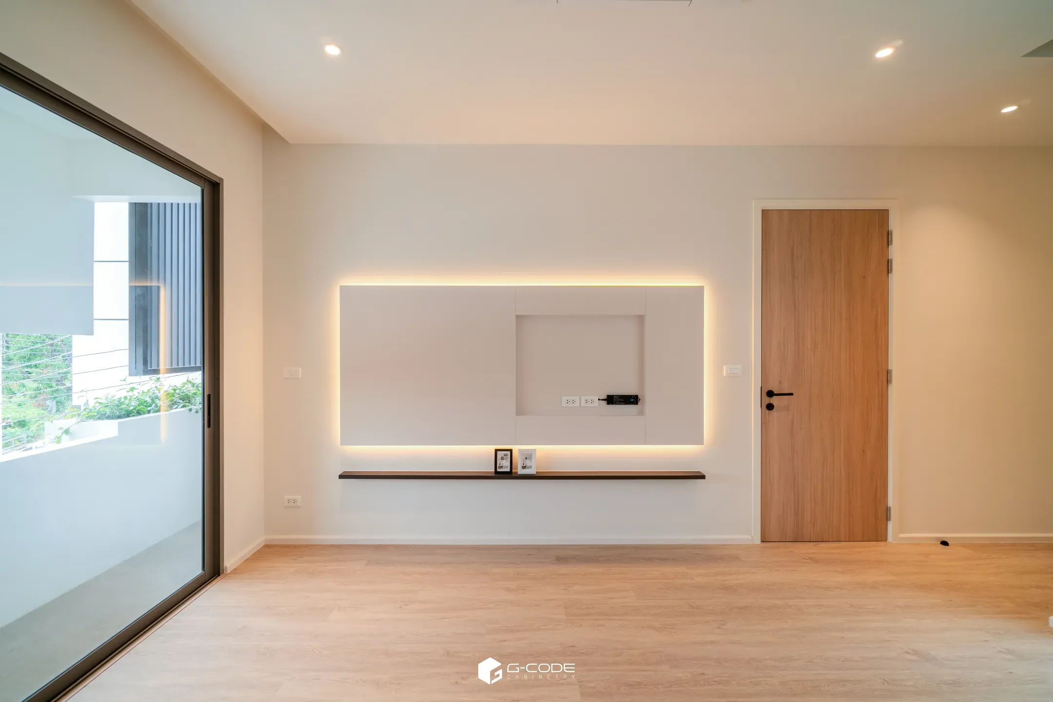 - Bedroom decorative wall paneling (headboard and TV wall)