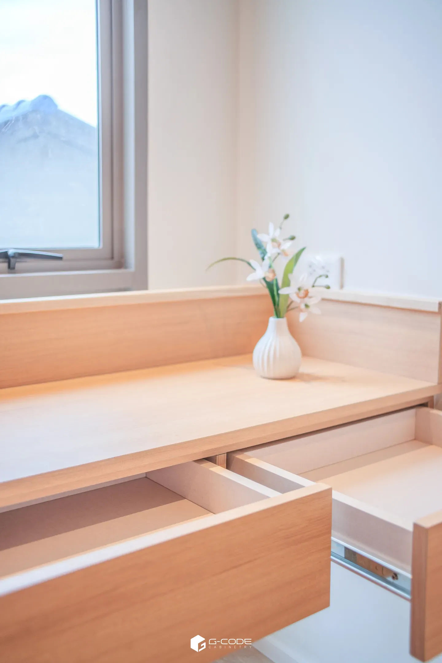 The result is a set of built-in furniture that perfectly balances design and practical use.